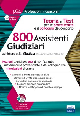 Rivolto a quanti intendono prepararsi al concorso per 800 Assistenti Giudiziari presso il Ministero della Giustizia (G.U. 22/11/2016, n. 92), il testo riporta le nozioni teoriche di base per affrontare al meglio le prove d’esame (prima e seconda prova scritta e colloquio).